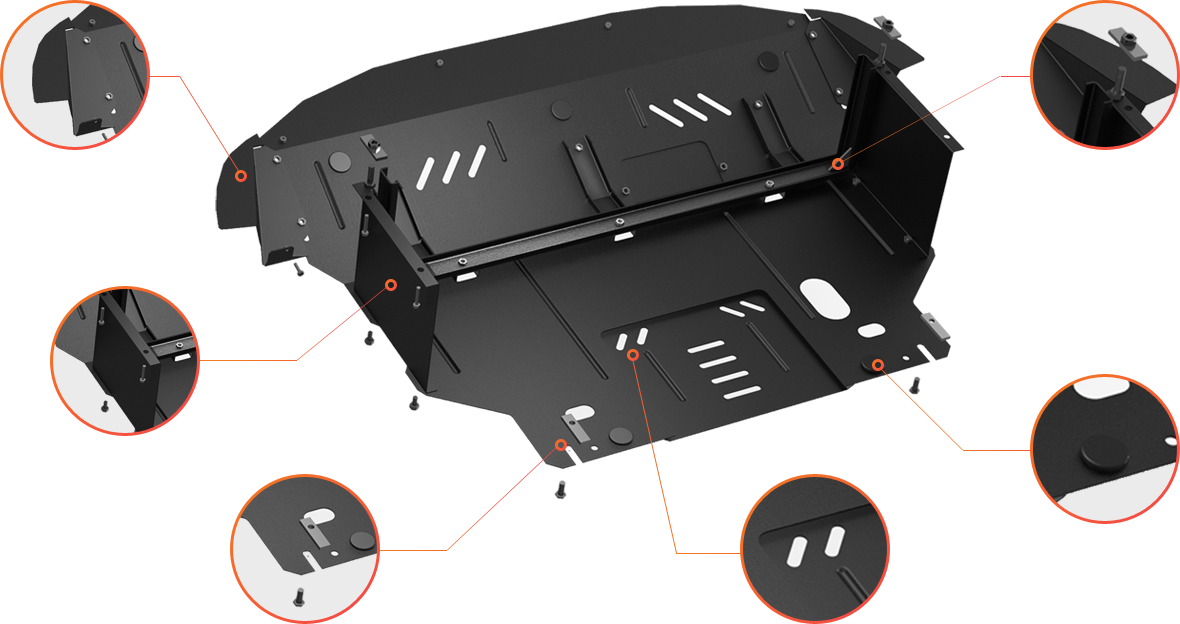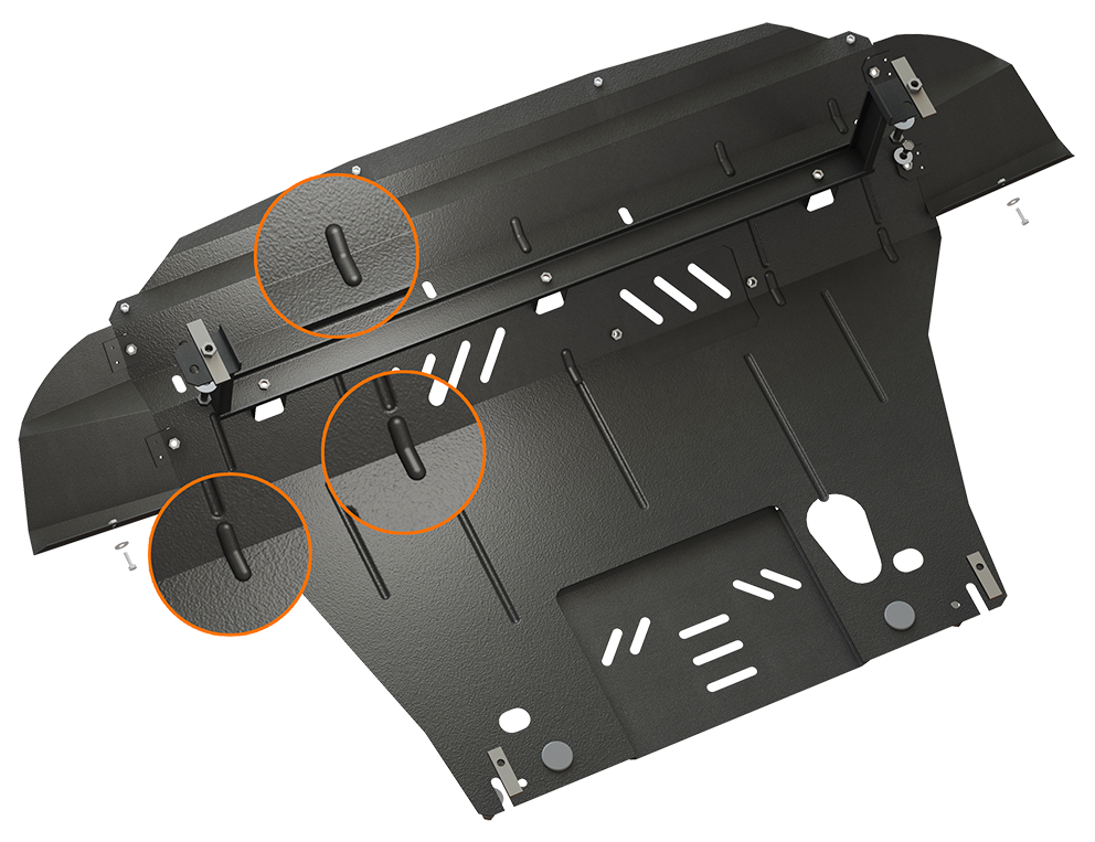 Um den perfekte Unterfahrschutz zu schaffen, haben wir die modernsten umwälzenden Technologien und Patente benutzt, alles gründlich durchgedacht und im Stahl materialisiert.
